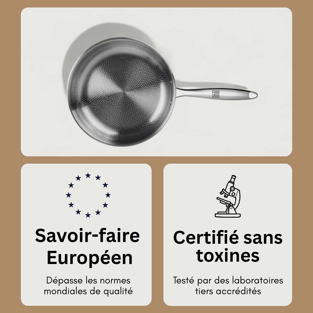 Non. Zéro toxine. Aucune couche, aucun plastique, aucun produit chimique — seulement du titane pur à 100 %, sûr pour les aliments et utilisé dans le domaine médical.